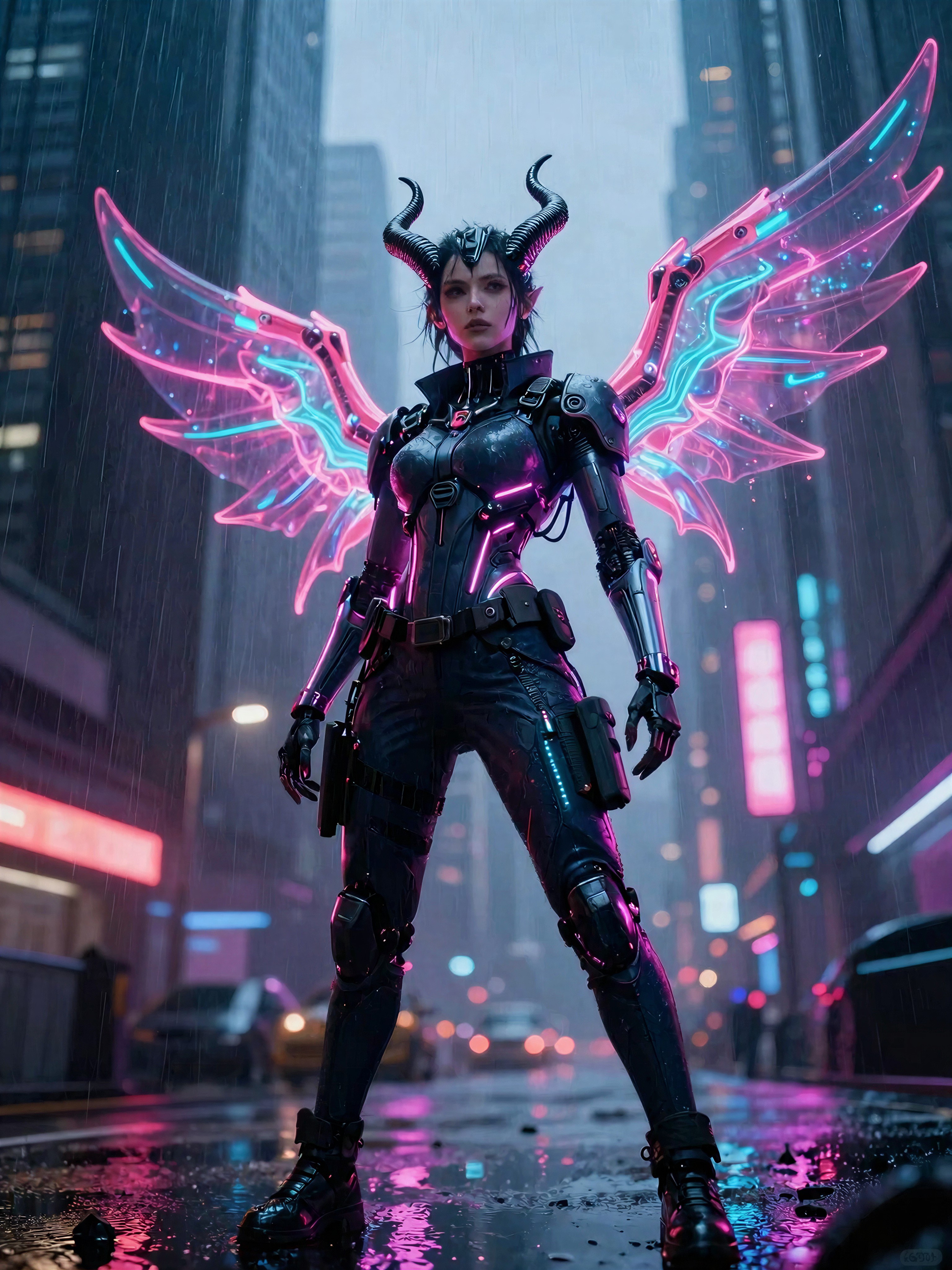 Holographic Wings and Neon Rain: The Cyberpunk Demoness Unleashed
